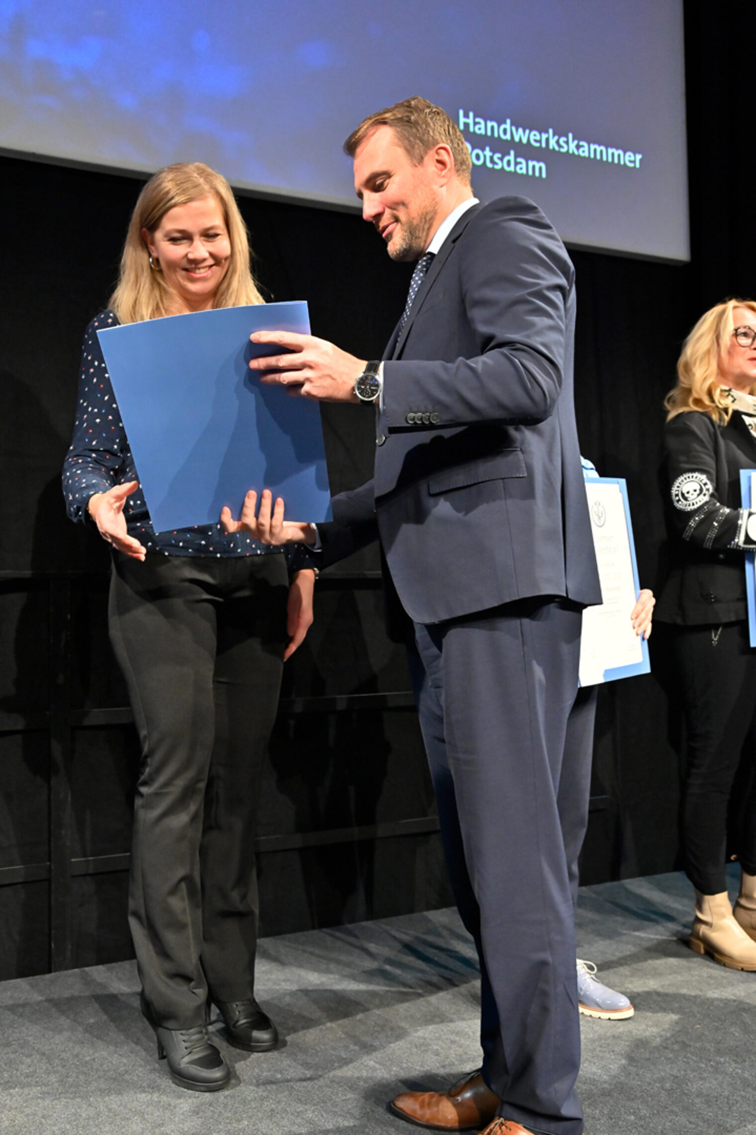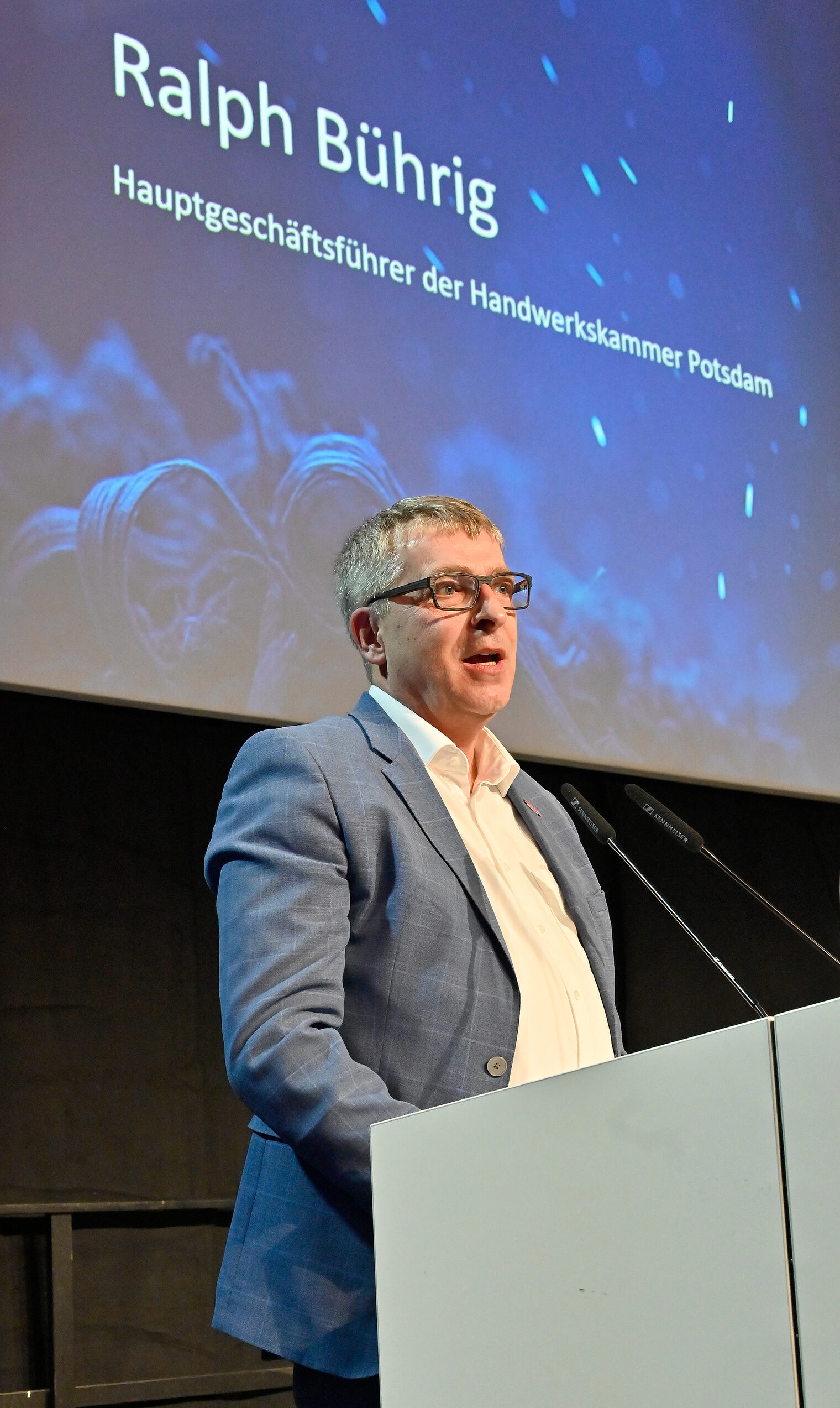 Brandenburgs Wirtschaftsminister Daniel Keller hob in seinem Grußwort der Landespolitik hervor: „Ihr 25-jähriges Jubiläum steht für eine bemerkenswerte persönliche Leistung und ist zugleich beispielhaft für die bedeutende Rolle, die das Handwerk als unverzichtbarer Motor unserer Wirtschaft einnimmt. Seit einem Vierteljahrhundert prägen Sie mit Ihrem Fachwissen, Ihrem Innovationsgeist und Ihrem Engagement die wirtschaftliche Entwicklung des Landes Brandenburg nachhaltig mit. Viele von Ihnen haben nicht nur unternehmerische Verantwortung übernommen, sondern auch zahlreiche Auszubildende auf ihrem Weg begleitet. Damit haben Sie einen bedeutenden Beitrag zur Fachkräftesicherung geleistet. Vor dem Hintergrund des demographischen Wandels, aber auch angesichts des digitalen Fortschritts und der Energiewende sind Sie in Ihrer Profession mehr denn je gefragt, die Zukunft unserer Gesellschaft aktiv mitzugestalten."
