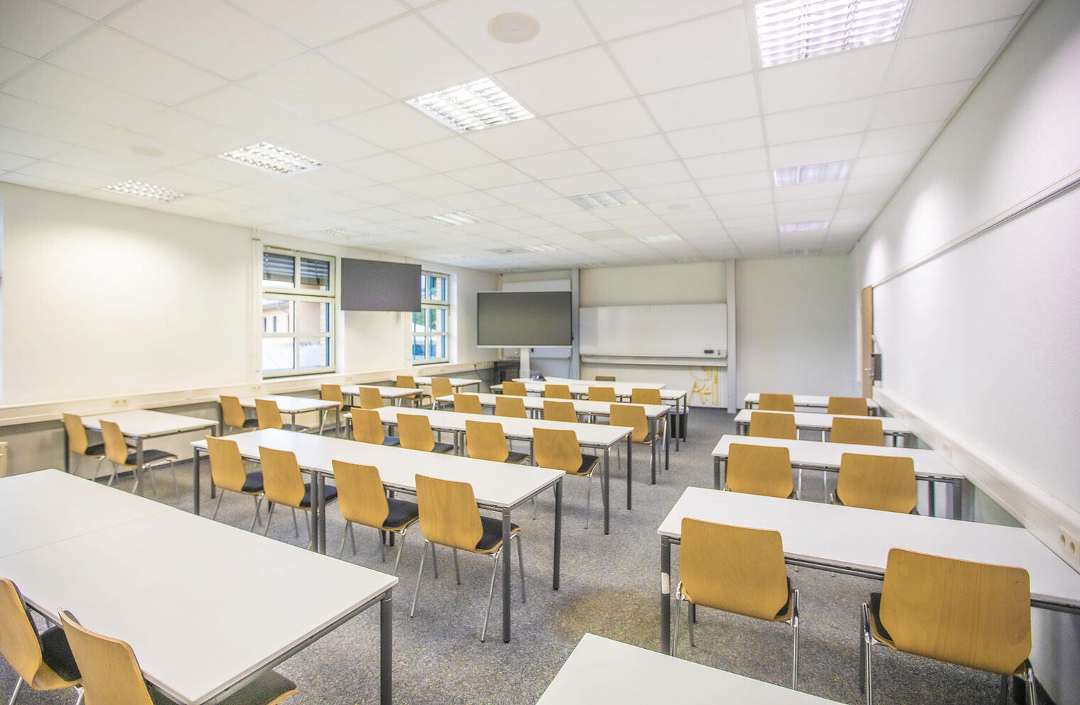 Seminarräume mit 240 Plätzen, ausgerüstet mit moderner Tagungs- und Unterrichtstechnik (Beamer und Netzwerkanschluss in allen Räumen, kostenfreies WLAN) bieten den richtigen Rahmen für Weiterbildungskurse und Tagungen. Eine Kantine mit Vollzeitangebot (260 Plätze) rundet das Komplettangebot ab.