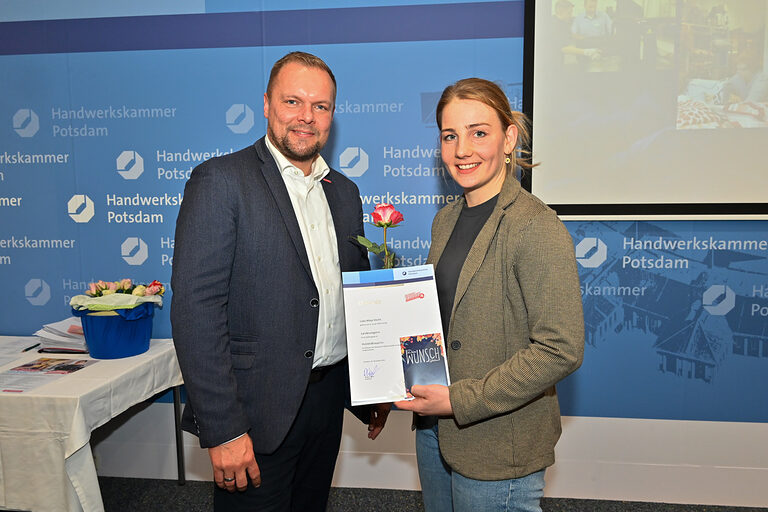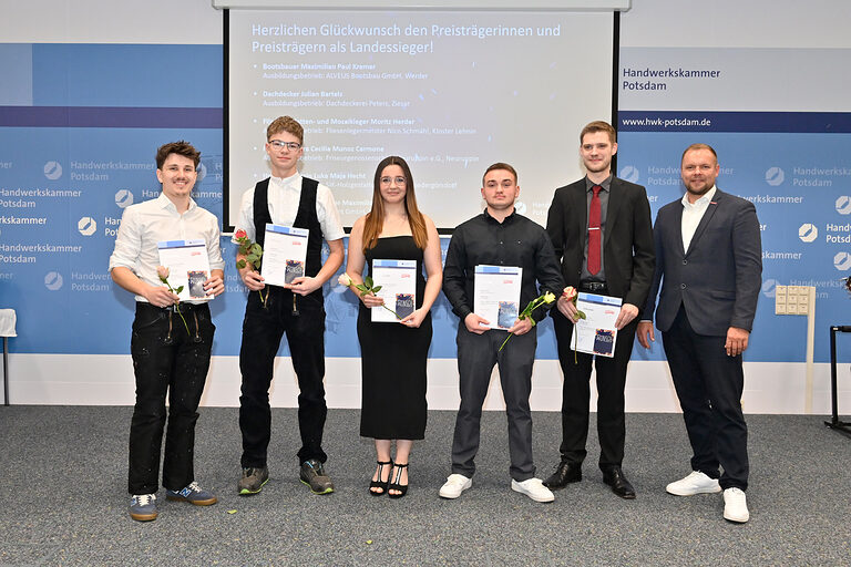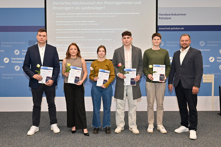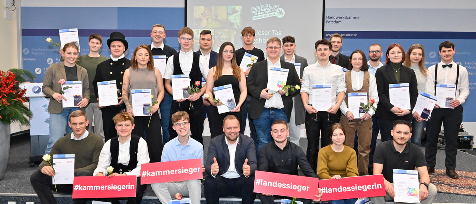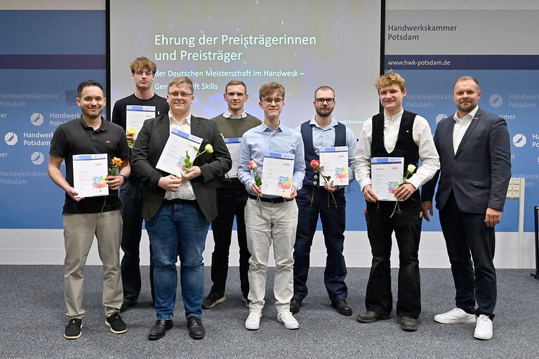 Die Handwerkskammer Potsdam hat am 28. November 2025 auf dem Bildungs- und Innovationscampus Handwerk (BIH) in Götz die besten Nachwuchshandwerkerinnen und -handwerker Westbrandenburgs ausgezeichnet. Im Leistungswettbewerb „Deutsche Meisterschaft im Handwerk – German Craft Skills (DMH)“ wurden 12 Kammersiegerinnen und Kammersieger sowie 21 Landessiegerinnen und Landessieger geehrt, mehrere von ihnen waren auch im Bundeswettbewerb erfolgreich. Unter ihnen: Maurergeselle Lennert-Louis Stern (3. Platz im Bundeswettbewerb), Zweiradmechatroniker Beat Brandstaeter und Holzbildhauerin Luka Maja Hecht (jeweils 2. Plätze).
