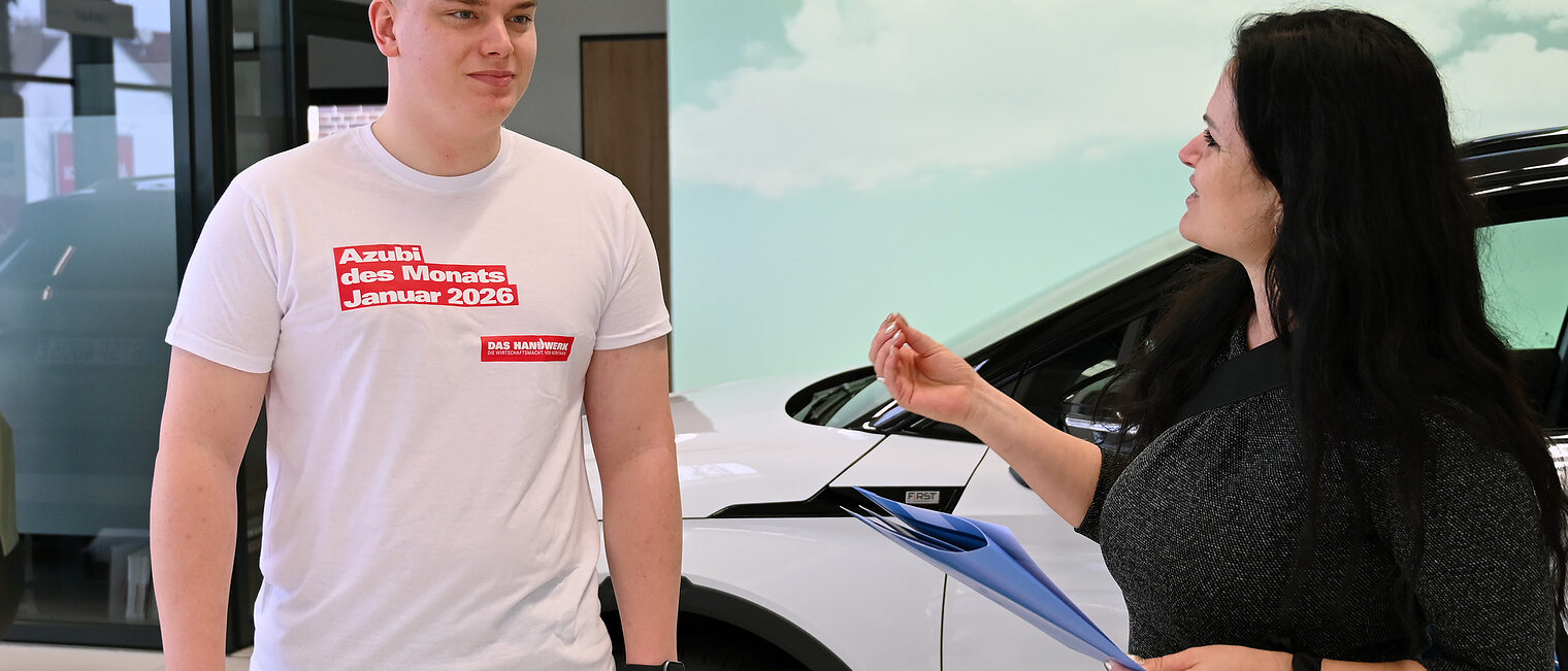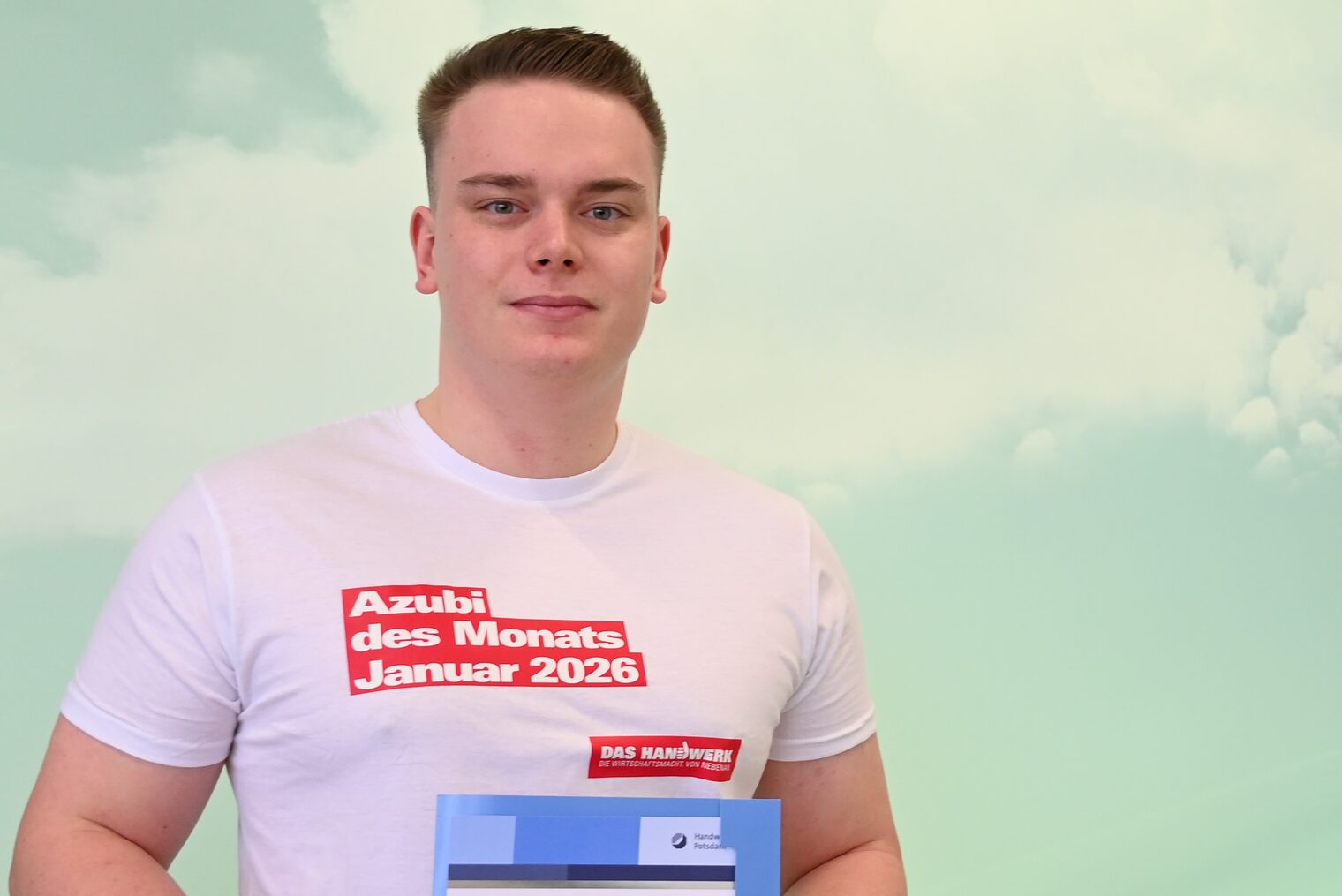 Kilian Böhm ist der Auszubildende des Monats Januar – und damit der erste des neuen Jahres, den Steffi Amelung, Abteilungsleiterin Berufsbildung der Handwerkskammer Potsdam, auszeichnen konnte. Er lernt im Autohaus Biering in Geltow den Beruf des Automobilkaufmanns und hat dort seinen Ausbilder und das gesamte Team von seiner Leistung überzeugt.