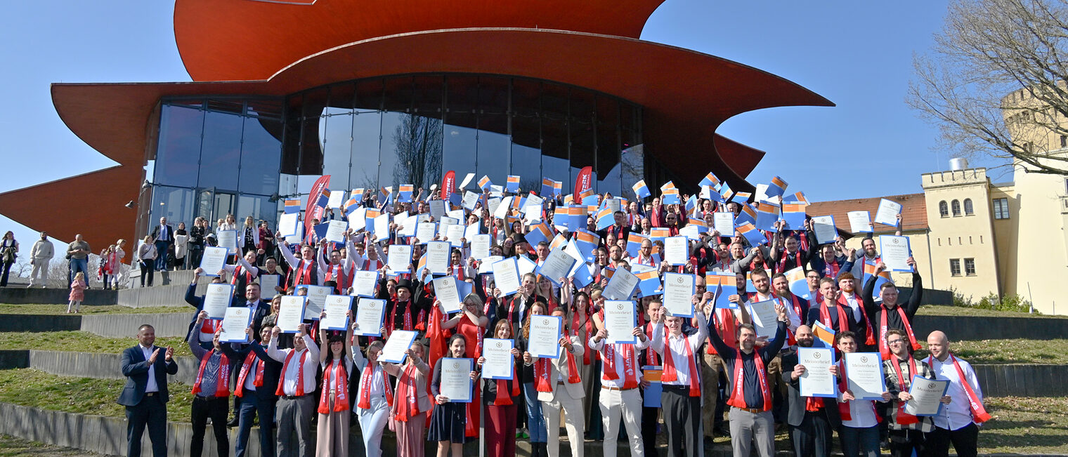 Im Rahmen eines feierlichen Festaktes erhielten 232 Absolventinnen und Absolventen aus den Händen von Robert Wüst, Präsident der Handwerkskammer Potsdam, Rekordolympionikin Claudia Pechstein sowie Brandenburgs Wirtschaftsminister Daniel Keller ihre Meisterbriefe.
