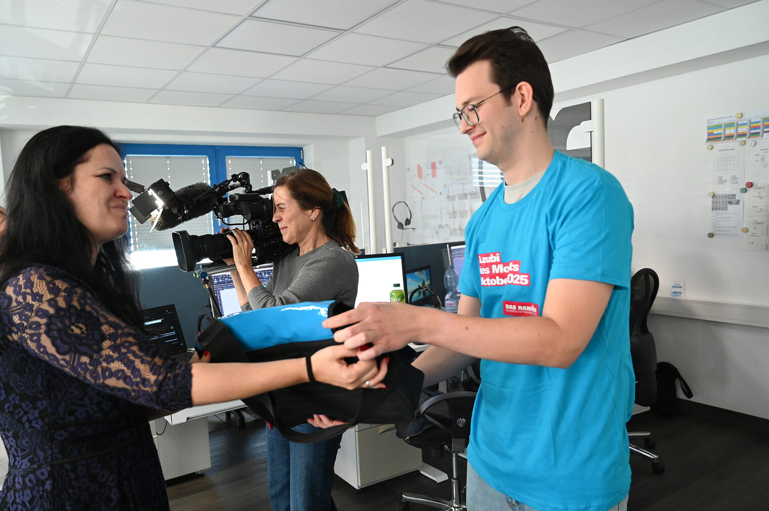 Steffi Amelung, Abteilungsleiterin Berufsbildung und Azubi des Monats Roman Seyfarth