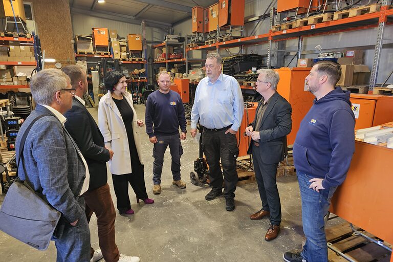 Gemeinsam machten Ralf Schneider, Prokurist bei K + S Elektroservice und die beiden neuen Geschäftsführer Patrick Bohr und Oliver George bei der K+S Elektroservice wurde sehr konkret, wie sehr Bürokratie und fehlende Praxistauglichkeit in Verwaltungsabläufen den Arbeitsalltag erschweren. Das Unternehmen bearbeitet jedes Jahr rund 3000 Aufträge und ist darauf angewiesen, zügig bei Kunden vor Ort zu sein. Umso dringlicher ist aus Sicht des Handwerks eine Lösung beim Thema Handwerker-Parkausweis. Für viele Betriebe wäre er eine spürbare Erleichterung, damit Einsatzfahrzeuge im Arbeitsalltag unbürokratischer abgestellt werden können. Ebenso deutlich wurde die Kritik an langwierigen Genehmigungsverfahren, zusätzlichem Papieraufwand und Abläufen, die noch immer zu wenig digital und zu wenig auf die Praxis kleiner und mittlerer Betriebe ausgerichtet sind. Einigkeit bestand darin, dass es in der Verwaltung einen noch stärkeren praxisnahen Denkprozess braucht: hinhören, wo die konkreten Sorgen und Nöte der Betriebe liegen, Verfahren erleichtern und vorhandene Unterstützungsmöglichkeiten, etwa durch die Wirtschaftsförderung der Stadt, wirksam nutzbar machen.