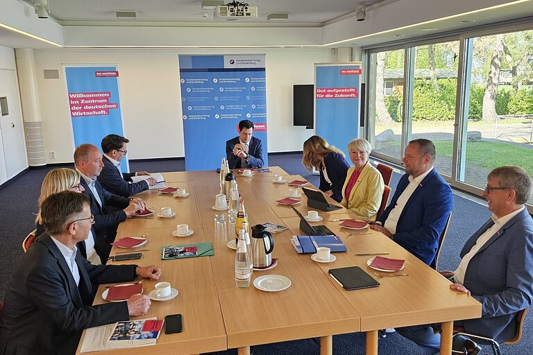Die Vertreter des Handwerks warben deshalb einmal mehr für verlässliche Rahmenbedingungen, eine auskömmliche und unbürokratische Förderung betrieblicher Investitionen. Auch die Weiterführung der Meistergründungsprämie als Unterstützungsprogramm für Gründende und Übernehmende im Handwerk, der Meisterbonus sowie faire Bedingungen bei öffentlichen Aufträgen wurden thematisiert.