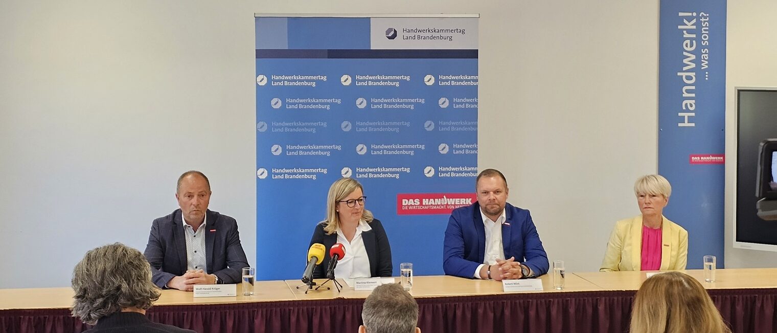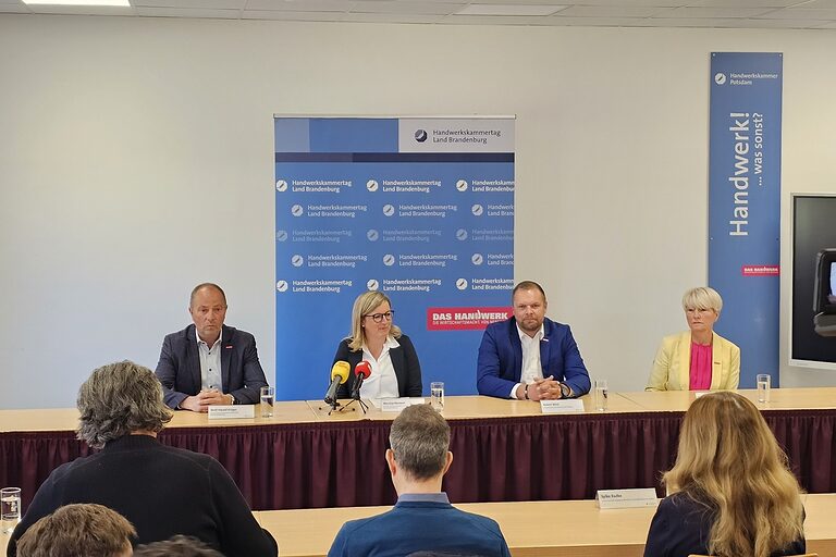 Im anschließenden gemeinsamen Pressestatement informierten Wirtschaftsministerin Martina Klement und die Präsidenten der brandenburgischen Handwerkskammern über die Schwerpunkte des Austauschs und die Erwartungen an die weitere Zusammenarbeit. Aus Sicht des Handwerks war das erste Treffen ein konstruktiver Auftakt. Entscheidend werde nun sein, dass aus dem offenen Gespräch konkrete Schritte für Entlastung, Ausbildung, Fachkräftesicherung, Nachfolge und Wettbewerbsfähigkeit folgen.
